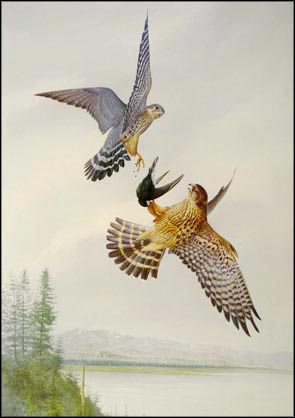 Our books and DVDs also make great gifts. For beginners interested in falconry or for natural history enthusiasts, consider a field guide as a gift. For the falconer with a new hawk, consider a DVD about hawking in the field or a book of falconry memoirs. When you want to give a present, but don’t know what to give, we have an assortment of note cards, playing cards, falconry momentos, and gift certificates. These are suitable for anyone, whether young or old, man or woman, boy or girl, falconer or non-falconer.